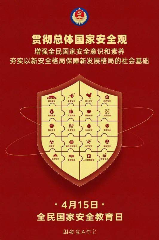 《中華人民共和國***法》第十四條明確規(guī)定,每年的4月15日是全民***教育日。今年的4月15日是第八個全民***教育日,主題是“貫徹總體***觀,增強全民***意識和素養(yǎng),夯實以新安全格局保障新發(fā)展格局的社會基礎(chǔ)。
